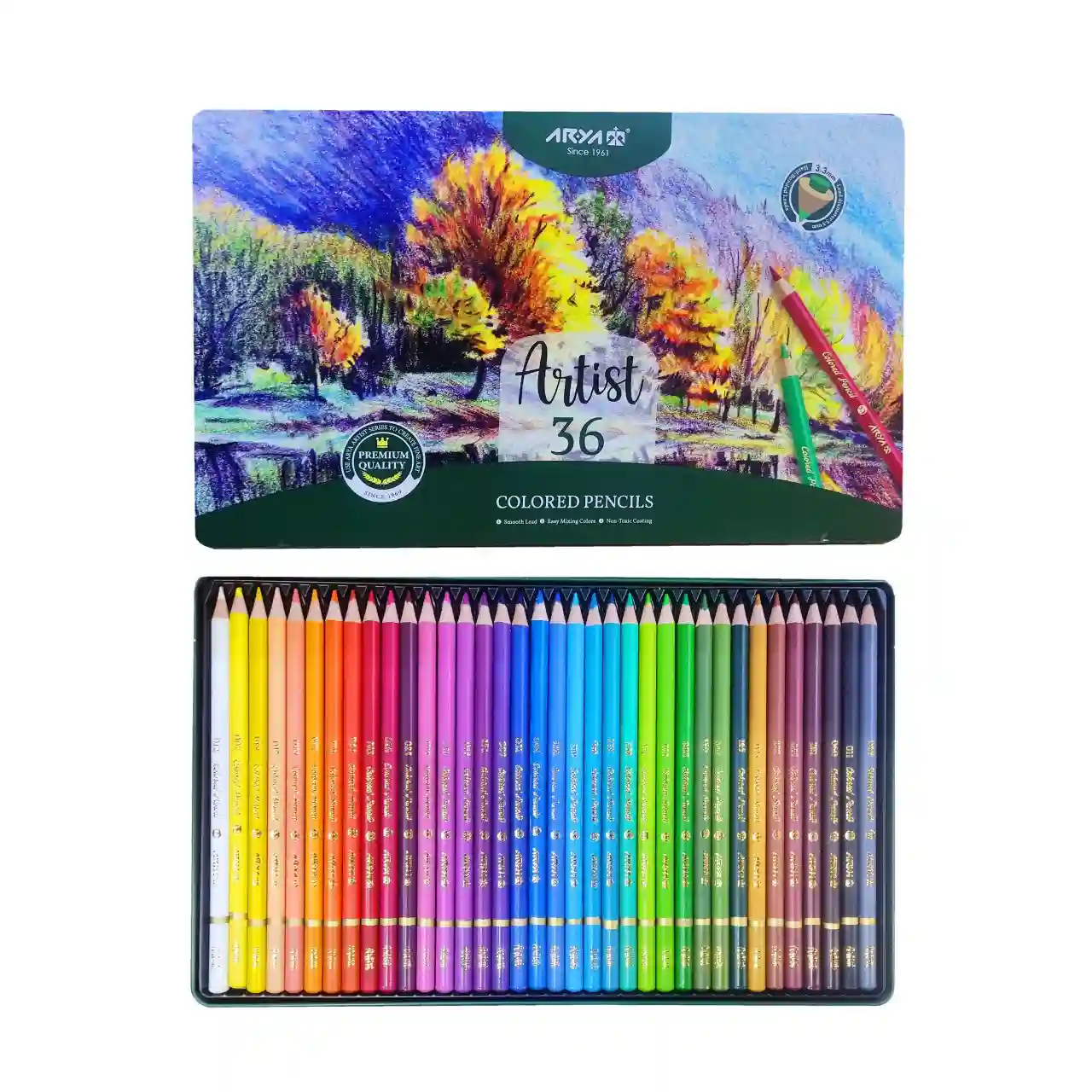 مدادرنگی 36 رنگ آریا آرتیست با جعبه فلزی