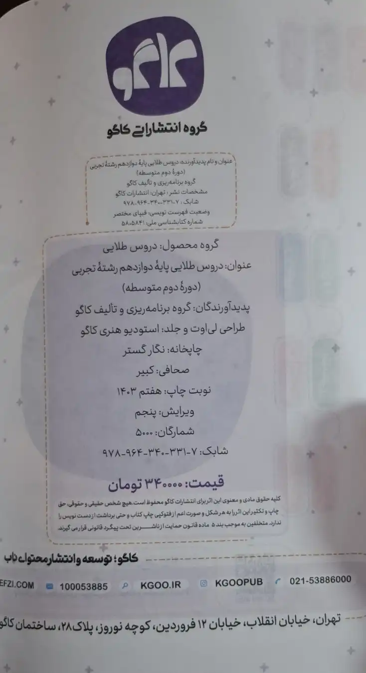 گام به گام دروس طلایی کاگو پایه دوازدهم تجربی